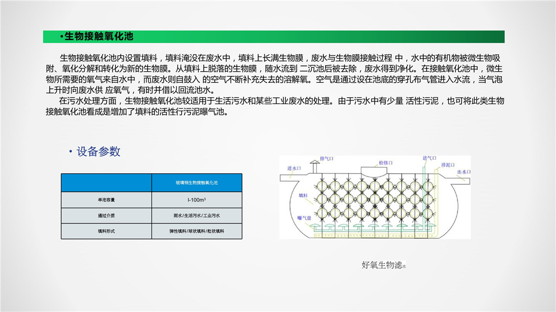 • 产品描述:由于玻璃钢材料与其它材料相比,具有强度高、 不长垢、耐盐碱、防腐蚀、抗老化性等特点。在欧洲 一些发达国家已被广泛应用于石油化工、环保排污、 海水输送、农业灌漑、电厂脱硫、给排水等多种设施 与领域。我公司在学习借鉴国内外经验的基础上,针 对污水处理工作环境特点,专门研制的污水处理专用 玻璃钢设备,其防腐蚀、耐盐碱和使用寿命长等优势 更加显著且安装、施工简单、管理维护方便;它的普 及和推广,不仅将有效降低污水处理项目相关建设成 本,而且将对促进低碳、环保、节能产业革命发挥积 极作用